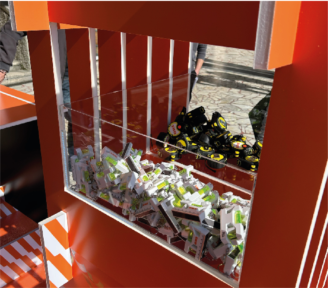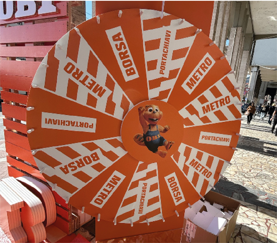 Il progetto ha incluso la creazione di display porta gadget e di una ruota gioco interattiva, pensata per offrire un’esperienza dinamica e incentivare la partecipazione attraverso la distribuzione di premi.
